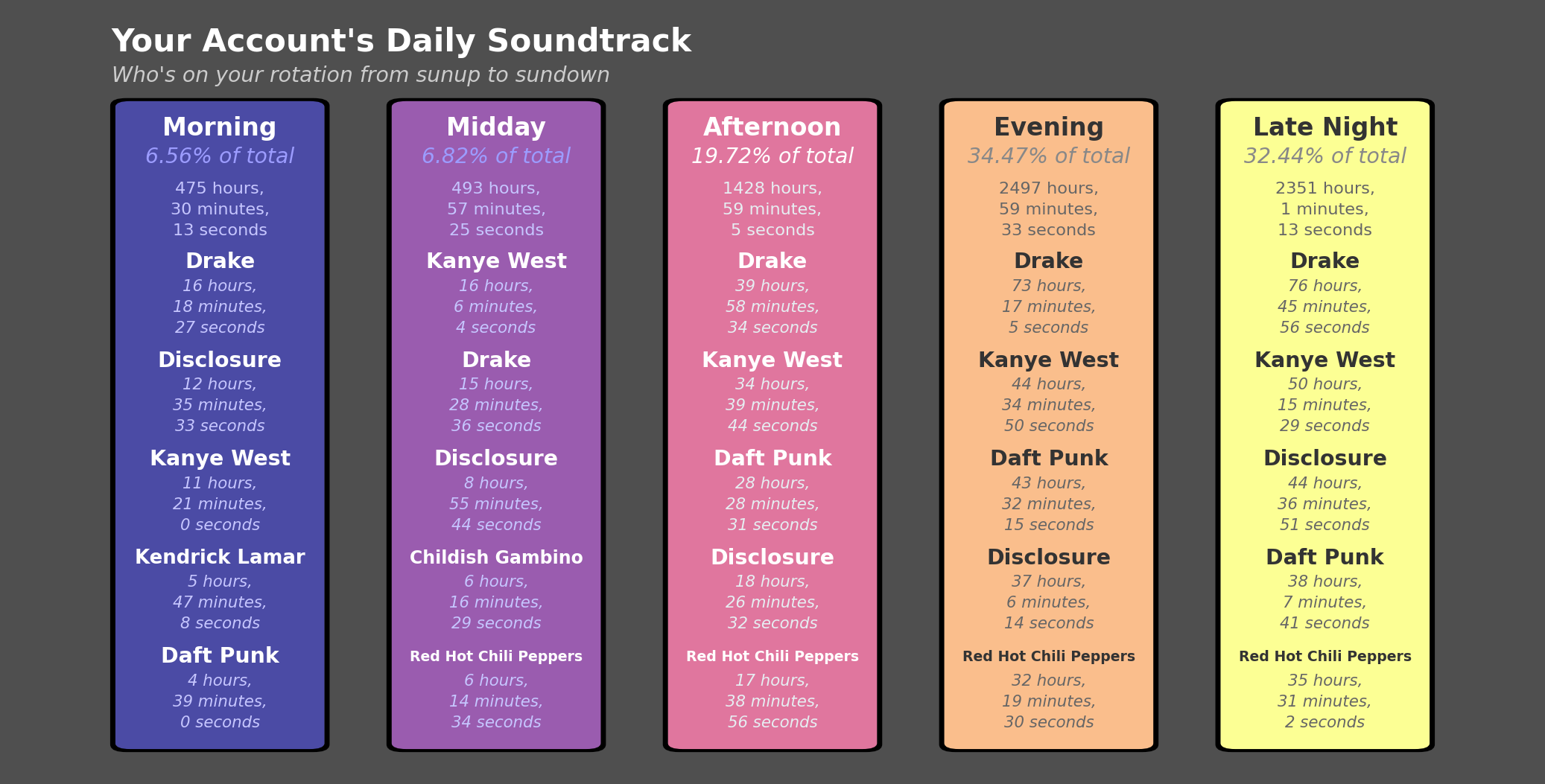 ListenLens visualizes your Spotify listening history in exciting ways to let you dig deep into your musical journey.